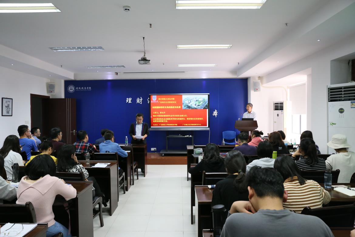 渐入深冬,羊城的十一月却依旧温暖如春。在这美好的季节里,26日午后,由财税学院与广东地方公共财政研究明胜m88官网举办的南方财税大讲坛第三十九期在广州校区北二330会议室顺利举行。本期讲坛的主讲人为现任中国国际税收研究会学术委员会副主任靳东升,本次讲座的主题为“当前国际税收关系的挑战与机遇”。财税学院院长庞磊主持本次讲座,财税学院全体19级硕士研究生及青年教师代表到场聆听学习。
