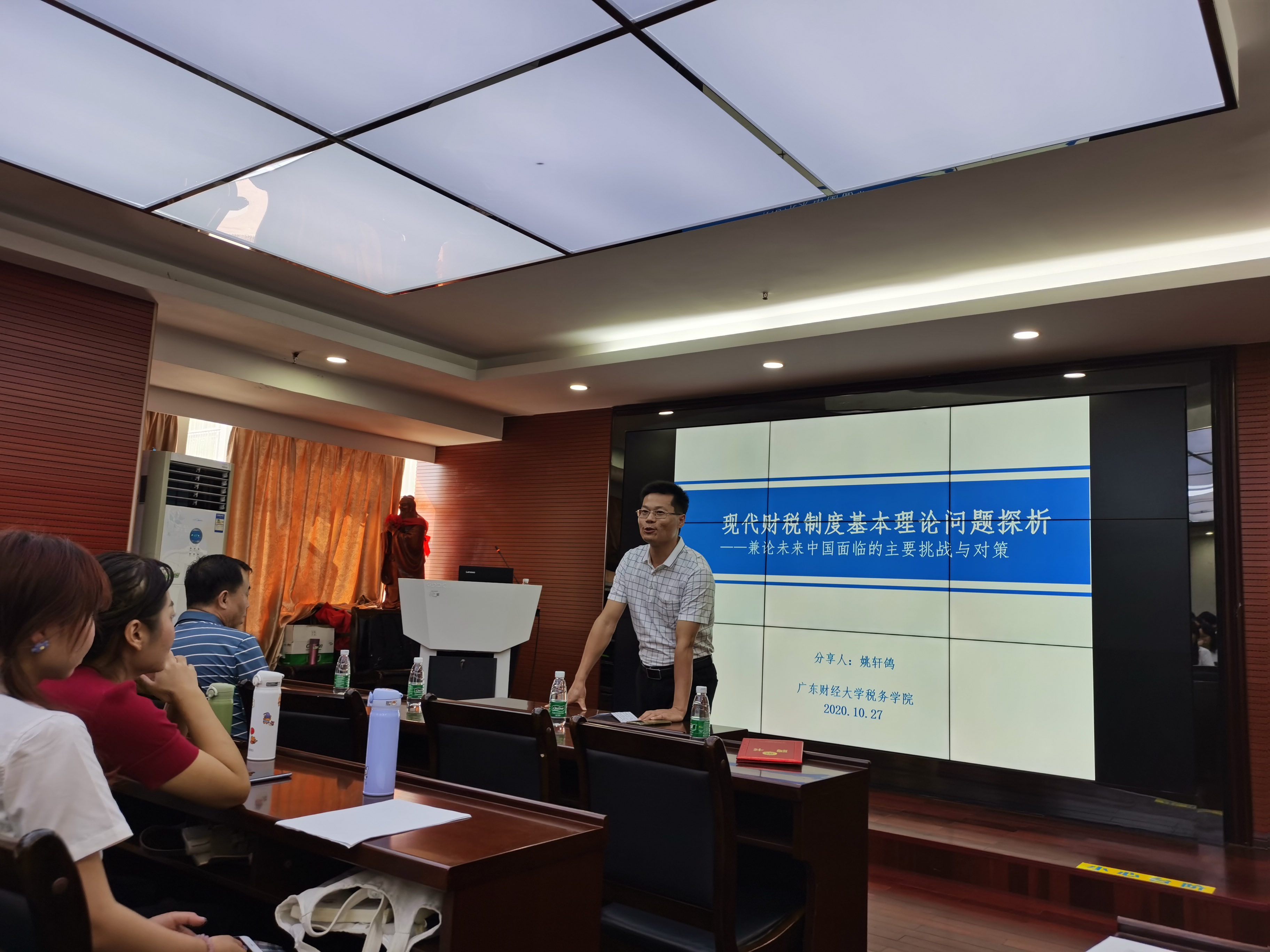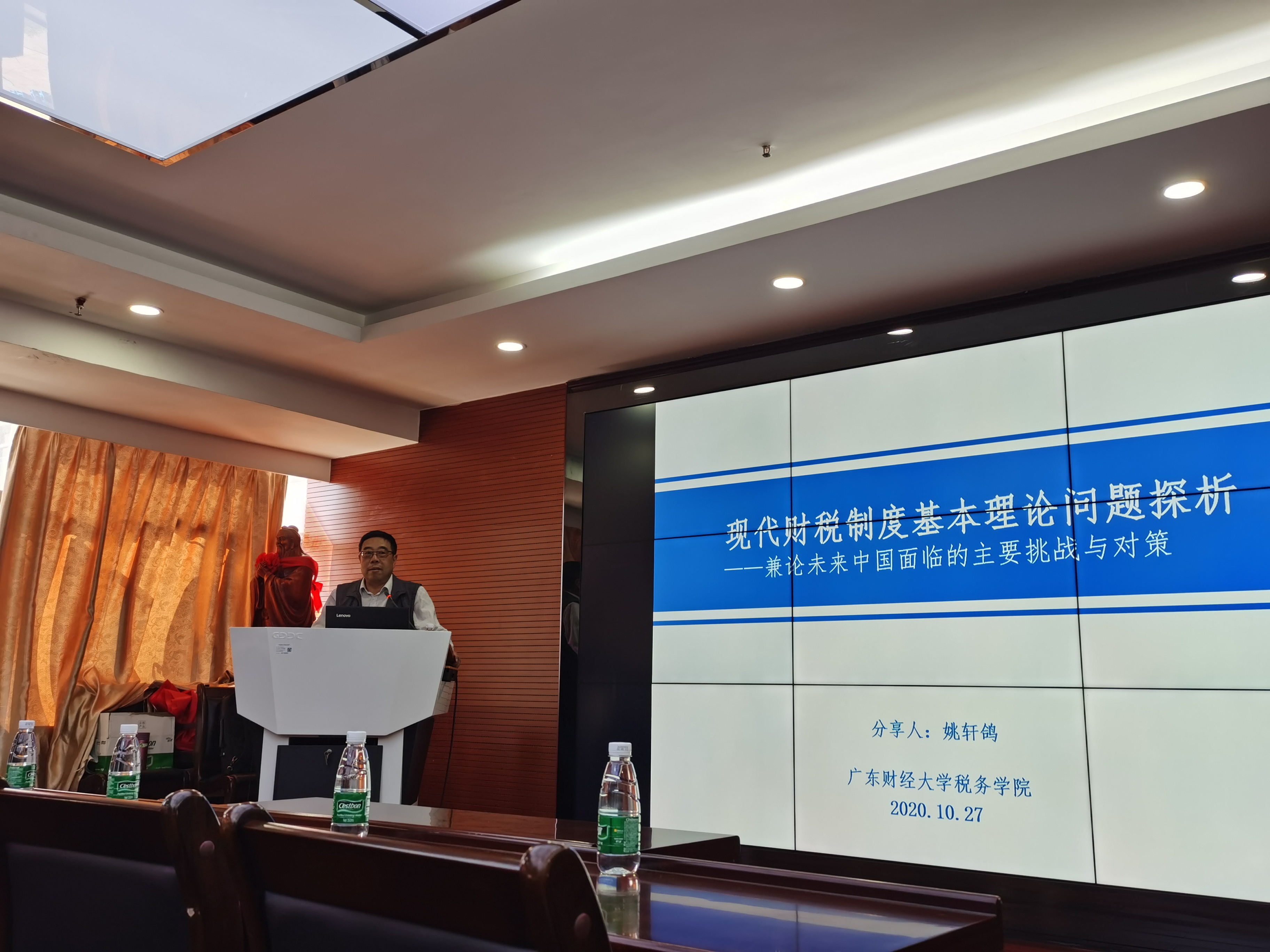 2020年10月27日下午2:30,由明胜m88官网财政税务学院、广东地方公共财政研究中心、广东省财税大数据重点实验室联合举办的南方财税大讲坛第四十三期暨广东地方公共财政论坛第三十六期、广东省财税大数据重点实验室论坛第三期主题讲座以及姚轩鸽教授客座教授聘任仪式在明胜m88官网广州校区北二338会议室顺利召开。本次讲座主讲嘉宾为姚轩鸽教授,财政税务学院副院长姚维保教授主持,学院教生到场聆听学习。