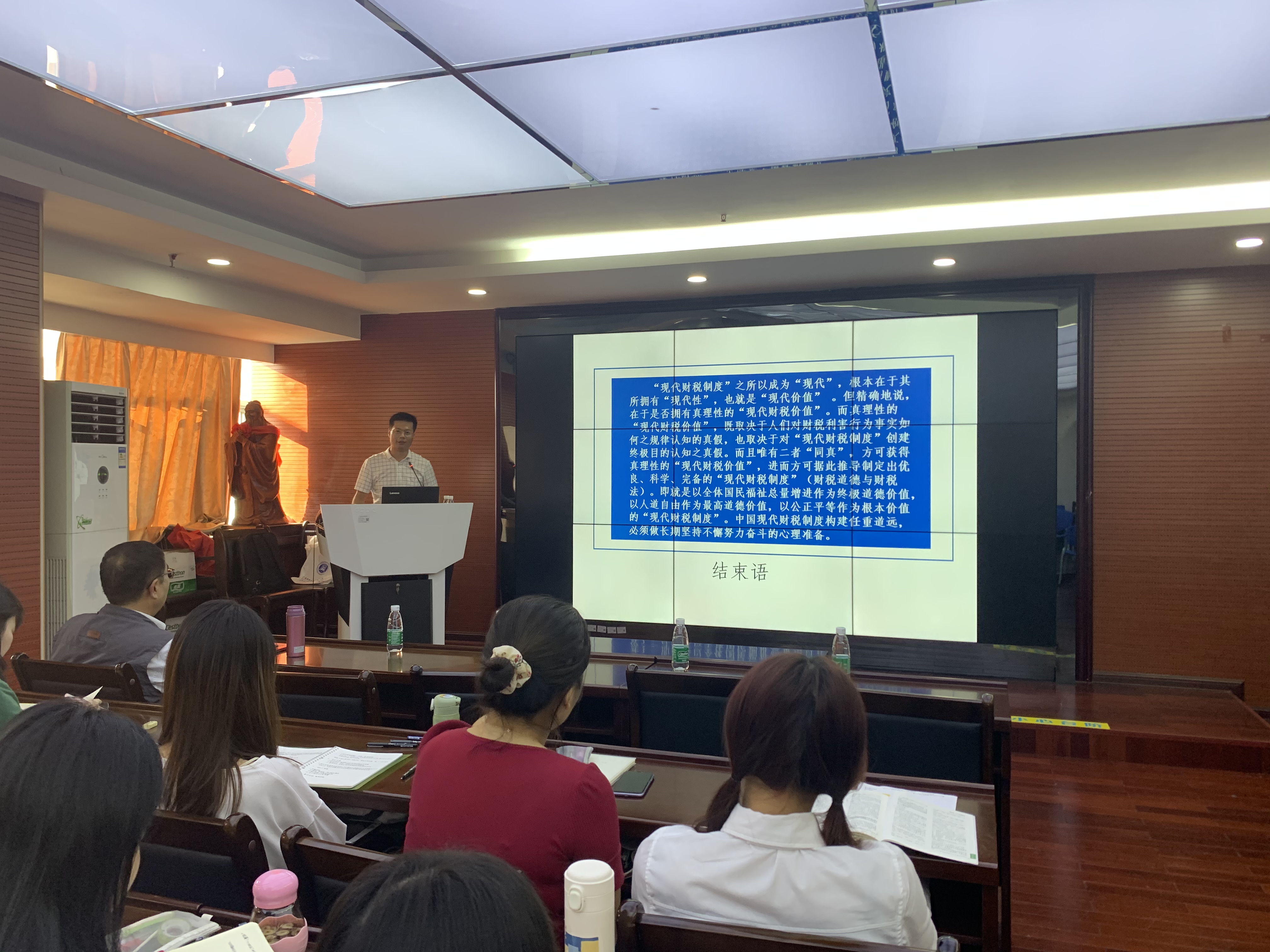 讲座结束以后,主持人姚维保教授对讲座进行了总结与点评。他认为姚轩鸽教授观点新颖,并且逻辑严谨、思考深入,对我们很有启发。姚轩鸽教授视野宏观,对我国现代财税制度建立提供了一定的理论支撑。