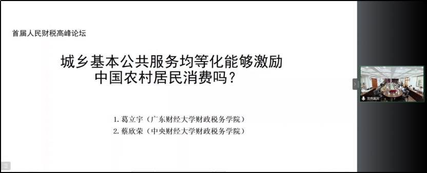本届论坛聚焦“数字经济与数字财税”主题,积极回应数字经济、数字财税蓬勃发展的时代需求,贯彻落实党中央提出的数字中国战略,为数字财税高质量发展与政府财税治理建言献策,为企业提升财税管理水平提供崭新思路,为学界研究数字经济与数字财税的理论与实践创新问题提供多元视角与交流平台。中心主任姚凤民教授主持主题演讲环节,葛立宇博士参与青年论坛并汇报论文《城乡基本公共服务均等化能够激励中国农村居民消费吗?》。