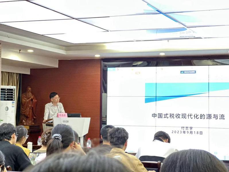 2023年9月18日,西南交通大学付志宇教授受邀来校为学院师生作“中国式税收现代化的源与流”学术讲座。讲座由李林木院长主持。