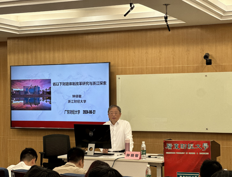 6月27日上午,由科研处和财政税务学院联合举办的广财学术大讲堂(第19期)成功开讲,浙江财经大学原校长钟晓敏教授作题为《省以下财政体制改革研究与浙江探索》的学术报告。讲座由于海峰校长主持,全校教师、博士研究生、硕士研究生线上线下积极参与。