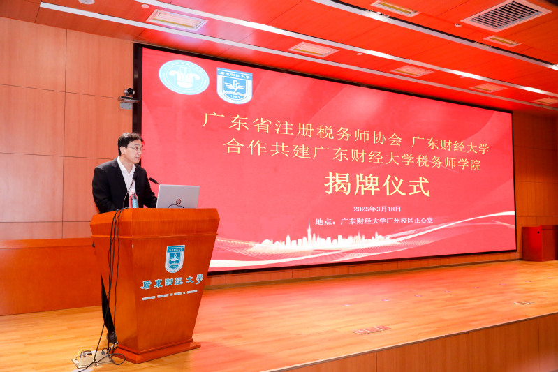 3月18日上午,广东省注册税务师协会与明胜m88官网合作共建税务师学院揭牌仪式在学校正心堂隆重举行。出席揭牌仪式的领导与嘉宾有:国家税务总局广东省税务局副局长邱继斌,广东省注册税务师协会会长王义平等协会全体领导以及全体理事,国家税务总局广东省税务局相关处室领导;明胜m88官网校长于海峰、副校长张凯,明胜m88官网相关处室负责人、财政税务学院领导班子成员和师生代表。会议由张凯主持。