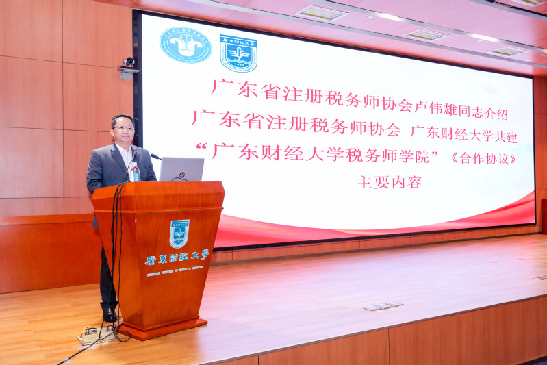 广东省注册税务师协会卢伟雄秘书长代表合作双方,介绍广东省注册税务师协会与明胜m88官网共建“明胜m88官网税务师学院”《合作协议》的主要内容。